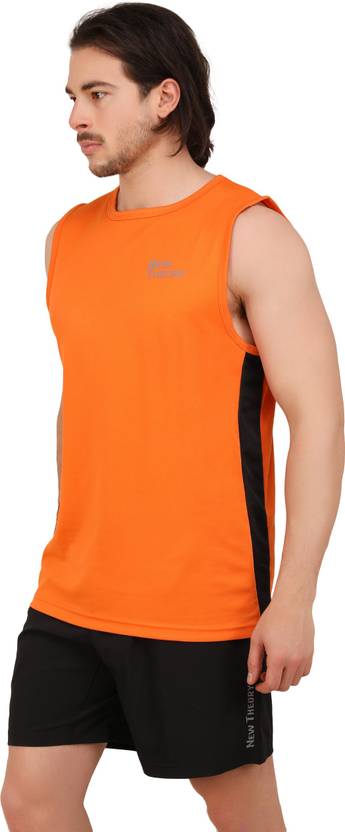New Theory Sleevless T-Shirt | Gym Top for Men |Workout Dress Men Sporty Round Neck Cotton Blend Orange T-Shirt
