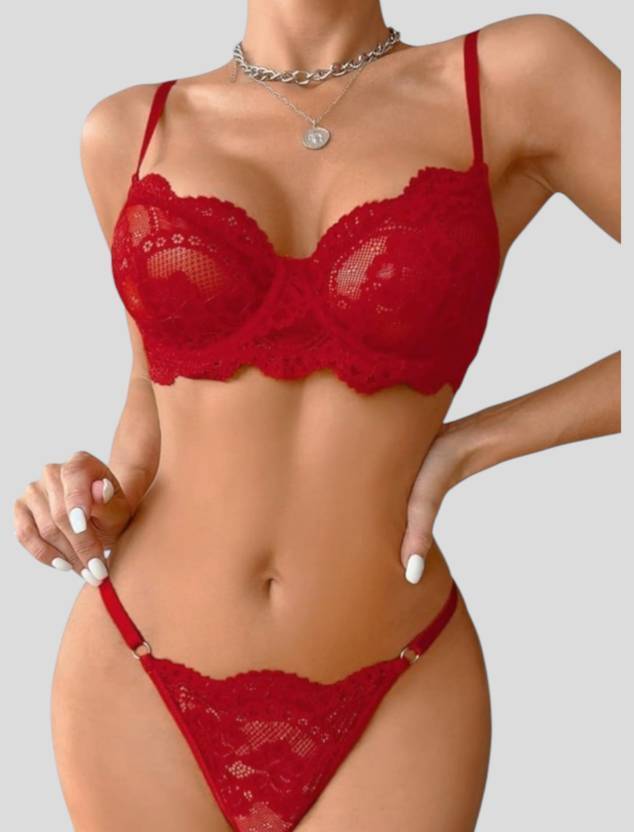 Newba Bra & Panty Set Solid, Self Design Maroon Lingerie Set