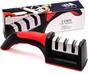 Push down the knives with a certain strength, pull from its base to the tip, don't push back and forth. After just a few seconds even old blunt knives are as good as new. The handle is ergonomically shaped with Rubber anti-slip base, for maximum grip and ensures ultimate stability and safety. Suitable for both left and right-handed users. The grinding position is made of tungsten steel, high-hardness ceramics and solid ABS plastic. Ensure long-term use.
