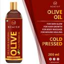 Pure Olive oil penetrates deeply into the hair shaft and skin, providing intense moisture and nourishment. It helps repair dry and damaged hair, leaving it soft, shiny, and more manageable. Hair Strengthening: Regular use of cold-pressed olive oil can strengthen hair follicles and reduce breakage. It promotes healthy hair growth and prevents split ends. Natural Shine: Achieve a beautiful, natural shine in your hair without the use of synthetic chemicals. Olive oil smooths the hair cuticles, enhancing its overall appearance. Frizz Control: Tame unruly frizz and flyways with this natural hair oil. It helps to keep your hair sleek and manageable, even in humid conditions. Dandruff Relief: Olive oil has anti-inflammatory properties and can soothe an itchy scalp. It helps alleviate dandruff and flakiness, promoting a healthier scalp.