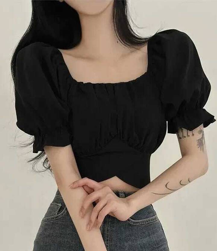 Material : Cotton Blend , Sleeve : Half Puff Sleeve, Neck Type : Sweetheart Neck., Fit Type : Regular Fit , Pattern : Solid , Top Type : Crop Rib Top / Short Top / Off Shoulder Top / Blouse top., Crop Top : Elastic ruffle cuffs and sweetheart neckline, can be worn as off shoulder or scoop neck. Cute and elegant crop top., Fashion Design : Our white crop tops for women features ruffled short sleeve, sweathart neckline and sexy off-the-shoulder design, making you look more elegant and charming. Cute and elegant crop top., Soft & Comfortable Top : Crop tops for women is made of skin friendly and soft polyester fiber fabric, with a soft feel and comfortable wearing., Easy To Match Top : Sexy off shoulder strapless bow knot crop tube top easily pair with your mini skirts, skorts, high waist shorts, jeans, etc., suitable for daily casual wear., Care Instruction : Machine Wash , Hand wash , Dry Clean