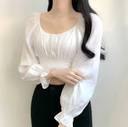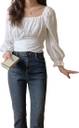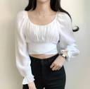 Material : Cotton Blend Delta | Neck : Round Neck | Sleeve : Full Puff Sleeve | Pattern : Solid, Soft Fabric: It conforms to the skin, allowing you to enjoy exceptional comfort, lightness and breathability., Fabric has no stretch, breathable and comfy, Feature: Round neck, puff long sleeve, slim fit, solid crop top tee. long sleeve, puff sleeve, sweetheart neck, frill trim, ruched bust, slim fit, solid color, crop blouse for women, Casual crop tee top, perfect for school, street out, everyday occasions