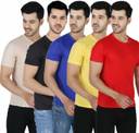 Newsingh Pack of 5 Men Solid Round Neck Polyester Multicolor T-Shirt