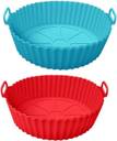 Newvent 2pcs Air Fryer Silicone Pot Food Safe Air fryers Oven Accessories Kitchen Tool Set (Blue, Red, Baking Tools)