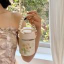 STYLISH APPEARANCE: Food grade glass coffee mug with floral insulated & nonslip PU sleeve, printed with phrase “ Life is full of sunshine” shows your positive life attitude. It designed with a detachable pearl handle for conveniently carrying around. Nice on the go cup for girls women.