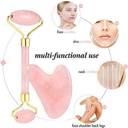 Newvent Rose Facial Massager Roller 1 Pc + Rose Stone Gua Sha Tool 1 Pc Original Rose Quartz Facial Massage Roller with Gua Sha Natural Dual Side Rose Quartz Facial Massage Roller With Gua Sha Massager Tool (Pack of 1 Rose Roller + 1 Rose Gua Sha, Color: Rose) Massager (Pink)