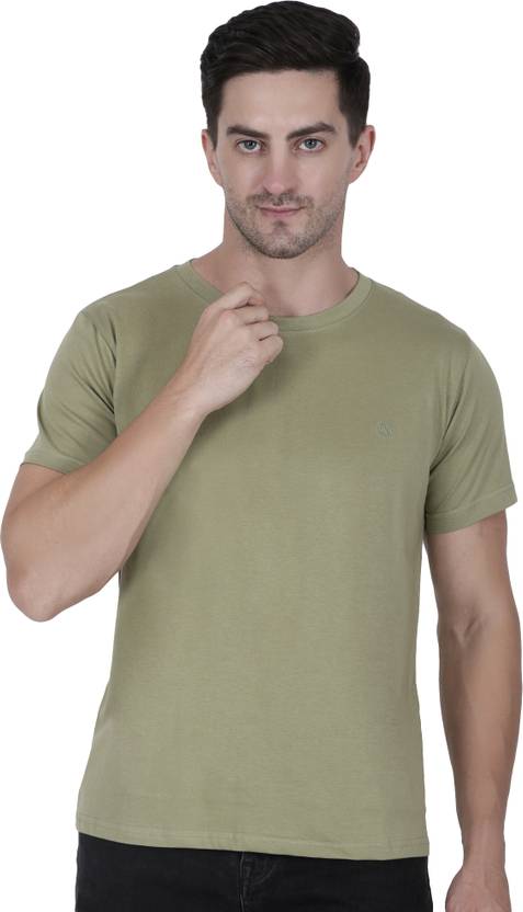 NEWZY Solid Men Round Neck Dark Green T-Shirt
