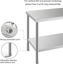 Durable and Easy to Maintain: Crafted from 18-gauge food grade stainless steel, our prep and work tables offer superior durability and ease of maintenance. The smooth metal surface is resistant to food and liquid absorption, preventing any compromise to the surface integrity. Cleaning is a breeze—simply wipe away excess food and spills without fuss or contamination.