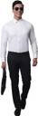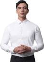WHITE DOBBY FORMAL SHIRT, HAS A SPREAD COLLAR, BUTTON PLACKET, REGULAR SLEEVE, ASYMMETRIC HEM