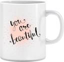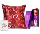 Valentine's Day Romantic Gifts for His/Her Coffee Mug - you are beautiful mug , cushion cover and 24 k Gift Rose Artificial Flower