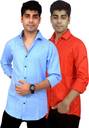 THE NEXT LEVEL Men Solid Casual Light Blue, Red Shirt (Pack of 2)