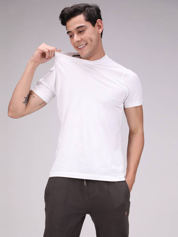 NextinEx Men Solid Round Neck Pure Cotton White T-Shirt