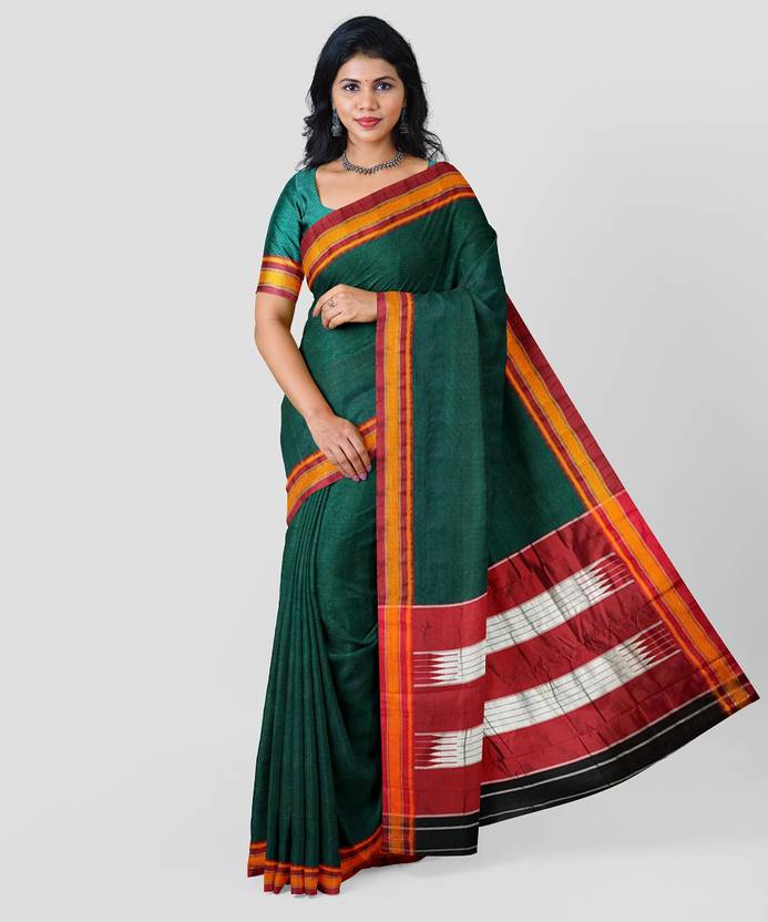 Neyge Self Design, Woven Ilkal Handloom Pure Silk, Pure Cotton Saree (Dark Green)