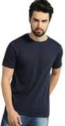 Men Solid Round Neck Cotton Blend Dark Blue T-Shirt