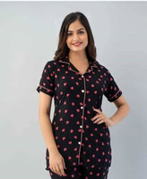 NF TOPS Women Printed Black, Pink Top & Pyjama Set