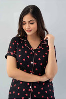 Featuring a notched collared top, this set combines elegance with comfort. The notched collar adds a classic touch, while the overall design ensures a relaxed fit. Ideal for lounging around the house or catching up on sleep, this design enhances your comfort. Thus, you can enjoy a lazy Sunday morning in this set, feeling stylish and at ease as you sip your morning coffee.