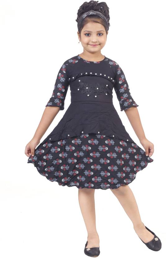 Girls Midi/Knee Length Casual Dress (Multicolor, Half Sleeve)