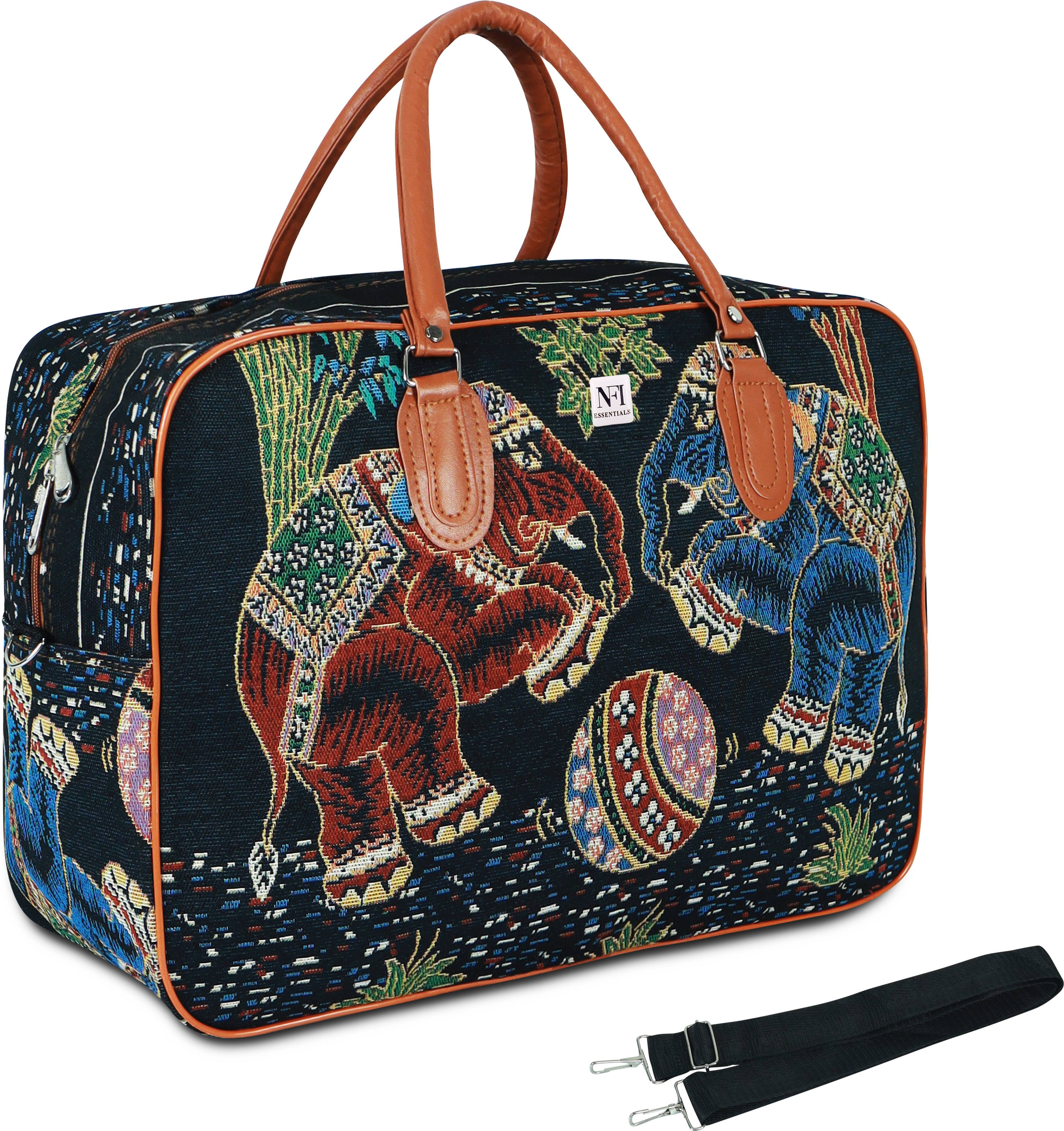 NFI essentials Elephant Retro Print Canvas Travelling Duffle Air Bag 43cm Small Travel Bag Small Travel Bag (Black)