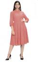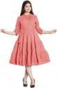 STYLISH AND BEAUTIFUL SOLID FLARED DRESS | HIGH NECK THREE QUARTER BALLON SLEEVE IN RAYON FABRIC | PARTY WEAR FOR WOMEN
