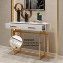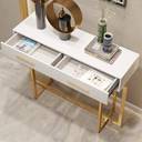 NG Decor 40" Narrow white Console Table with Storage Drawers and Metal Legs in Gold Metal Console Table (Finish Color - White & Gold, Pre-assembled)