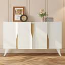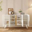 NG Decor 59" Modern White Sideboard Buffet with Doors Curved Credenza Adjustable Shelve Engineered Wood Free Standing Sideboard (Finish Color - White, Door Type- Hinged, DIY(Do-It-Yourself))