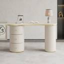 NG Decor Modern Off-White Curved Desk 3-Drawer Wooden Home Office Desk Double Pedestal Engineered Wood Office Table (Free Standing, Finish Color - White, DIY(Do-It-Yourself))
