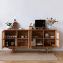 NG Decor Natural Sideboard Buffet Rattan Kitchen Cabinet 4 Doors 4 Shelves in Small Engineered Wood Free Standing Sideboard (Finish Color - Brown, DIY(Do-It-Yourself))