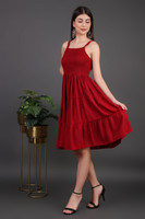 NG Fashion Women Fit and Flare Maroon Knee Length Dress