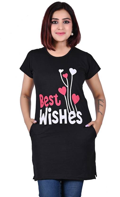NGFASHION Printed Women Round Neck Black T-Shirt