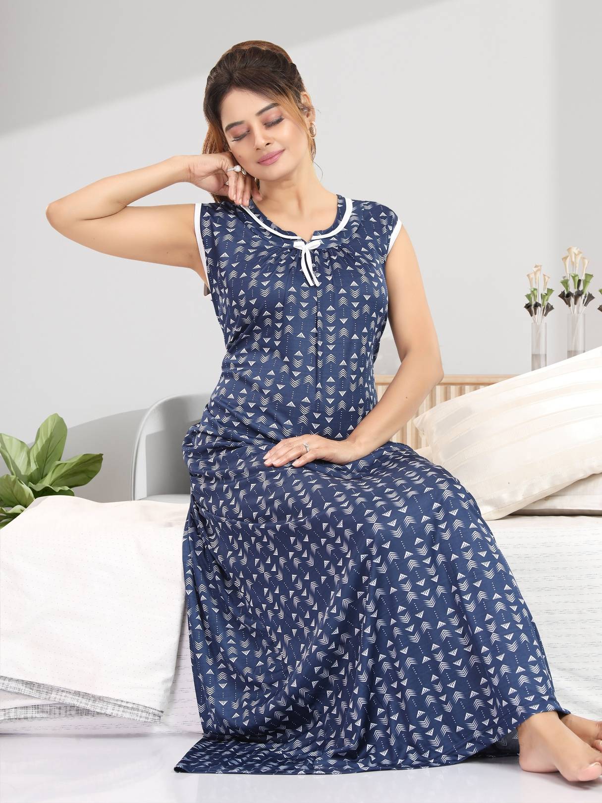 Enjoy the seasonal mood in silky satin pajama nightsuit set Classic short sleeve nightsuit set by ‘NICEHUG’ with lapel collar and full length pants with elastic for relaxation. This light weight satin pyjama set if beautifully decorated with contrast on collar, sleeve hem and pajama hem, its a perfect gift for slumber party for girls bridal set. Can be gifted as bridal nightwear set as well. Made with 100% Polyester Silky satin fabric which is light in weight and easy on skin. Made with 28 gaze bright lycra.