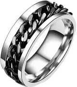 NICELIFE COLLECTIONS Black Fidget Spinner Rings for Men & Boys Stainless Steel Spinning Ring Stainless Steel Titanium Plated Chain Ring - Multi Finger