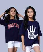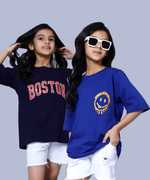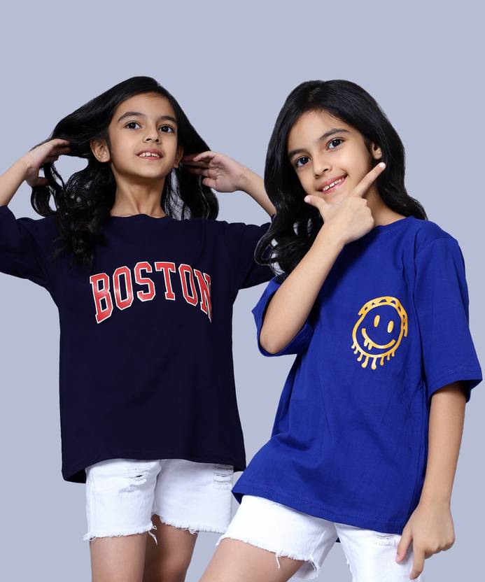 Girls Printed Pure Cotton Oversized T Shirt (Multicolor, Pack of 2)
