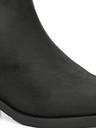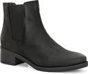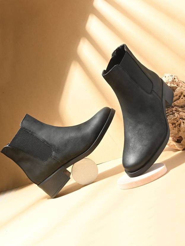 Step out in timeless style with these sleek black Chelsea boots. Crafted from smooth Genuine Leather, these ankle boots feature a classic silhouette with a rounded toe and low block heel for all-day comfort. The elastic side panels and pull-tab at the back make them easy to slip on and off, while the clean lines and matte finish add a touch of understated sophistication. Perfect for both casual and semi-formal looks, these boots pair effortlessly with jeans, skirts, or tailored trousers.
