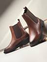 Step out in timeless style with these sleek Brown Chelsea boots. Crafted from smooth Genuine Leather, these ankle boots feature a classic silhouette with a rounded toe and low block heel for all-day comfort. The elastic side panels and pull-tab at the back make them easy to slip on and off, while the clean lines and matte finish add a touch of understated sophistication. Perfect for both casual and semi-formal looks, these boots pair effortlessly with jeans, skirts, or tailored trousers.