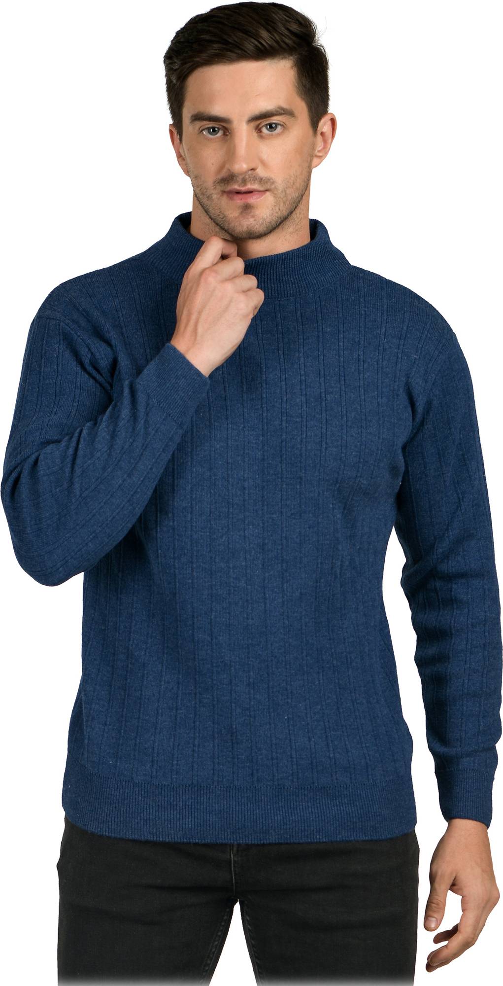 TRIPR Men Solid Round Neck Dark Blue Sweater