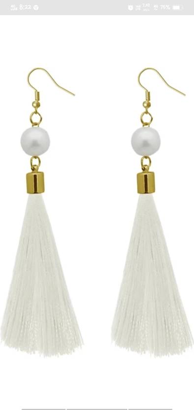 Silk Thread Hanging Tassel Earrings..size 3 inchs.. Color white .. Used daily but Dont wash in water..