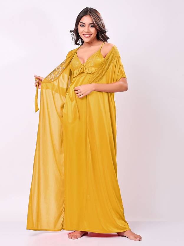NIGHT KEYS Women Nighty with Robe (Yellow)