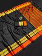 NightBlue Solid/Plain Banarasi Cotton Blend Saree (Green)