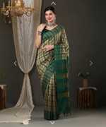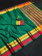 Solid/Plain Banarasi Cotton Blend Saree (Green)