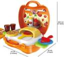 22 piece pizza oven kits in suitcase tool toys pretend play cooking sets for boys and girls. Pieces made out of safe, strong and durable eco-friendly material around. Portable suitcase make it easy to organize. Easy to play and store. Easy to bring along portable tool suitcase box this cute activity toy as a great way to encourage creative play and skill development. This fun set includes almost everything for children role play game. All accessories are designed realistic, provides hours of fun for your little ones. Dimension of this product : 28.5cm*23cm*19c