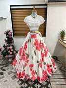 DIGITAL PRINT FULL LENGTH FLARED ANARKALI LEHENGA PURE GEORGETTE FABRIC***FOR SIZE ADJUST DORI TIE UP*** MOST TRENDY DESIGN***STITCHED FLARED BLOUSE*Light weight Georgette**Less wrinkle*easy to washable*comfortable for long hours wear