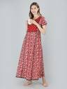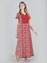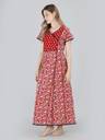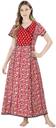 Refresh your ethnic wardrobe with this red & white printed cotton long kurti, designed with comfort and elegance in mind. Featuring a maxi length, V-neck, and short sleeves, this kurti is made from breathable cotton fabric, making it an ideal choice for casual outings, daily wear, or festive gatherings. The contrast black piping adds a touch of sophistication, while the vibrant print enhances its ethnic charm. Pair it with leggings, palazzos, or wear it as a standalone maxi dress for a chic look.