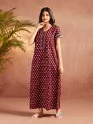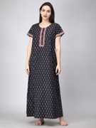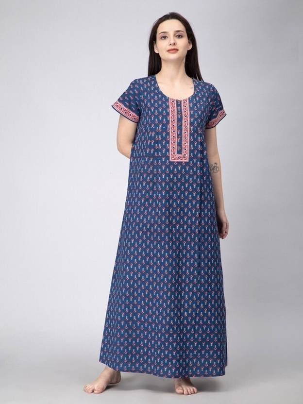 We are NIHSAMAH, a brand from Jaipur, that believes that a woman is beautiful & strong, inside out. We bring to you seasonless, classic fashion for the woman of today. Embrace your true self in our beautiful & elegant looks. Wear them anytime. Anywhere. We offer a variety of nightwear that caters to all of Women's needs because their comfort is our top priority. Our products are designed with comfort in mind, allowing ladies of all ages and sizes to stay comfortable. Furthermore, they are available in appealing colors and prints that make them look appealing and keep them fashionable. For a pleasant and comfortable night's sleep, women can choose from a beautiful assortment of high-quality nightwear from the NIHSAMAH brand house. The sleepwear is comfortable and perfect for nighttime because it has been made to fit your skin type. The fabric is incredibly soft, and the cut is designed loosely to give you a comfortable fit while you sleep. The nightwear is a must-have in your wardrobe. This sleepwear has an exceptional fit that will help you look your best without sacrificing comfort. The fabric is of the highest quality and is so soft that it is ideal for daily usage. It features a flowery print design in attractive colours that will make you look lovely even as you get ready for bed.