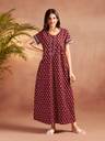 NIHSAMAH Core Style Cotton Nighty for Women — Premium Printed Stylish Long Cotton Nighty | Comfortable & Fancy Sleepwear, Nightwear, Maxi (Maroon Colour)