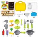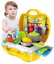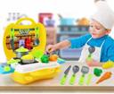 Dream kitchen play set is made of durable ABS plastic. Non-toxic, odorless, no sharp edge, safe for children. Tested to meet safety standards for toys. Advanced simulation kitchen toys, made of durable and high quality plastic and all at a reasonable rate. Toddlers and kids love to play shopping & pretend play while slicing and cooking. Shop, Slice, Cook with these vibrantly colored cutting vegetables, food, little stove top, pots, pans and utensils. This attractive and durable playset will keep your little one occupied with hours of fun play time, thus, encouraging imaginative and creative play. A great gift for your kids and they will love it! Kitchen play set for little chefs to get busy serving up meals for themselves, playmates, and family. Recommened Age 3 Year and Up. The suitcase design is light and convenient for your little one to carry along for a family outing or to a friend's place. Package Include : 1 x Storage Box, 1 x Cover Plate,1 x Knife,1 x Spoon,2 x Forks,1 x Shovel,1 x Faucet,1 x Plate, 2 x Pot Covers, 2 x Seasoning,1 x Pylon,1 x Hanging Plate, 2 x Shelves,1 x Sauce Pan,1 x Soup Pot,1 x Broccoli,1 x Carrot,1 x Corn,1 x Strip of Stickers and Other Accessories.
