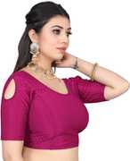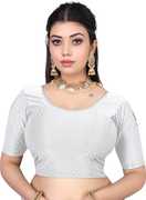 round neck dobby cotton lycra stretchable full sleeve readymade saree blouse for women stylish