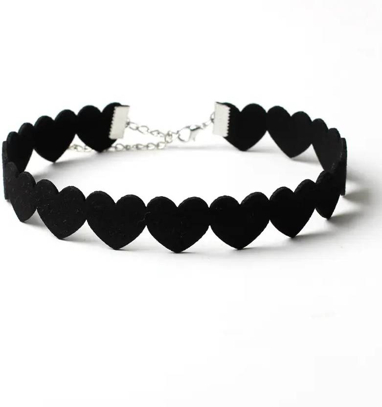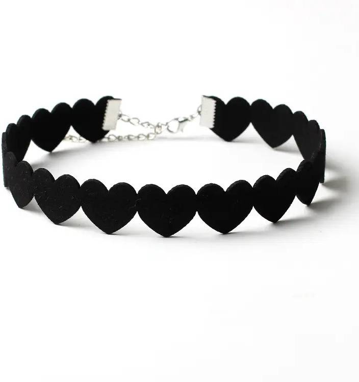 The heart-shaped pendant can be made from various materials, such as metal, enamel, or even adorned with rhinestones or other embellishments for added glamour. The black color of the choker lends it a sense of sophistication and modernity, making it a popular choice for fashion-forward individuals.
