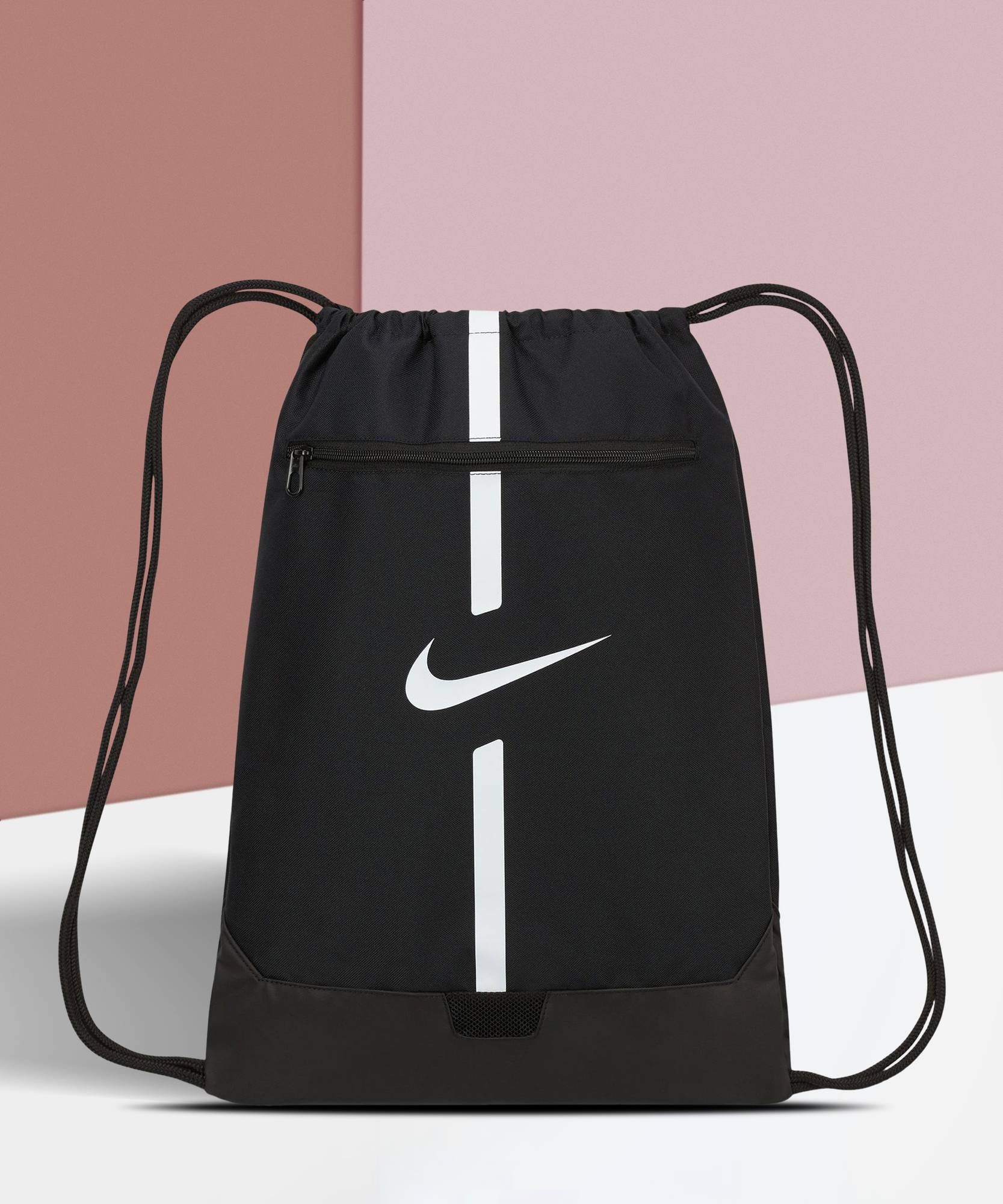 The Nike Academy Gymsack is a lightweight design with a drawstring closure, so you can quickly access your belongings when you're on the go. An exterior pocket lets you keep smaller items separate. This product is made from at least 50% recycled polyester fibres.