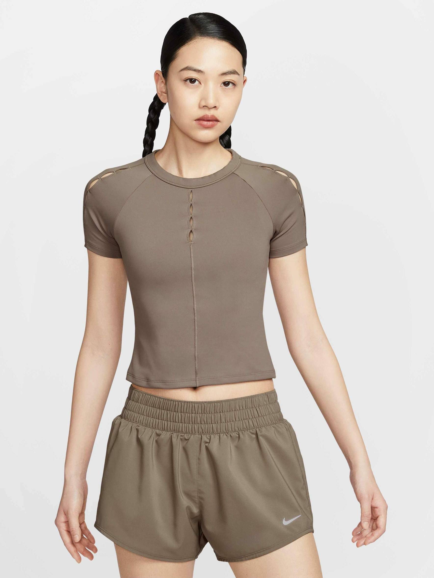 Nike One works for it all. Midweight and peachy-soft, this breathable top stretches with you and dries quickly so you can stay ready to sweat.