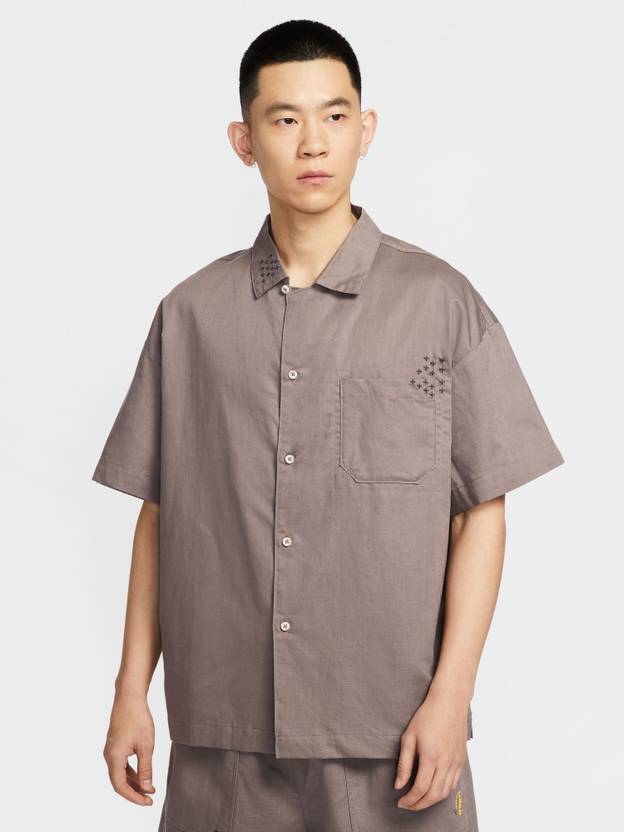 NIKE Men Solid Casual Brown Shirt